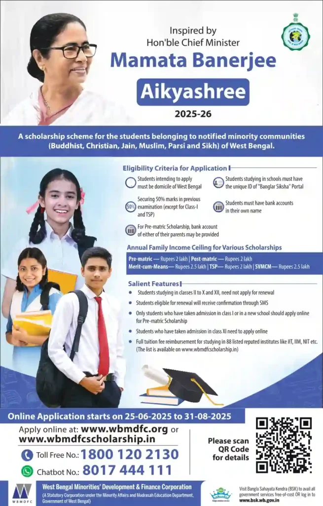 Aikyashree Scholarship 2025-26 : Check Eligibility, Apply Online, Last Date, Status